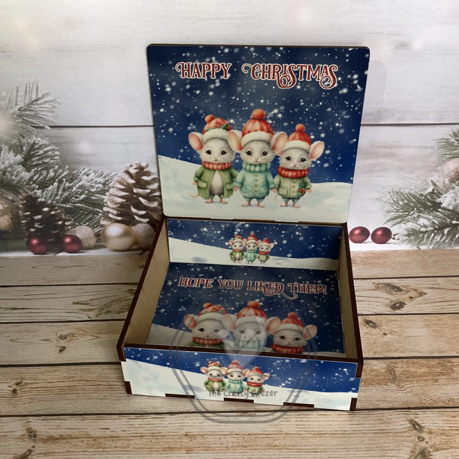 Writing will be printed as shown in the photos whith Happy Christmas on the lid and Hope you liked them on the base. Each one can also be personalised giving it an even more special touch. Please write name/wording required in the pop-up box at the checkout, double checking your spelling as it will be printed the same as you have written it.