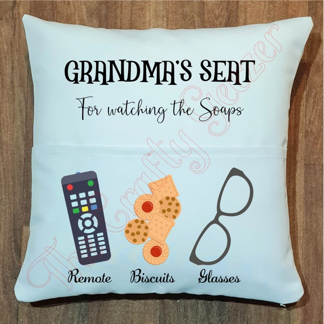 - Pocket on front to stash her remote, glasses and biscuits in.