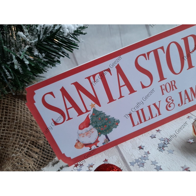 - Personalised with children's names or a family name eg. Santa Stop Here for The Green Family.